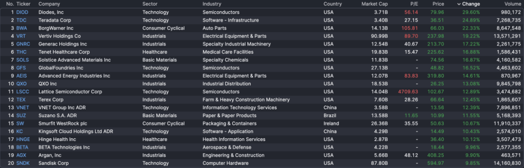 To that end, we turn our attention to the midday movers, our daily list of the top and bottom 25 stocks on the markets with at least a $2 billion market cap: